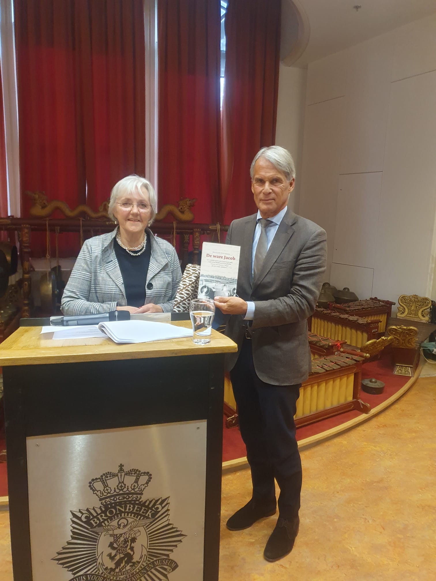 Arnhem, Bronbeek 1-11-2023: overhandiging van het eerste exemplaar van De ware Jacob aan voormalig Commandant der Strijdkrachten Dick Berlijn